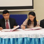 รศ.ดร.ประเสริฐ ปิ่นปฐมรัฐ รักษาการผู้อำนวยการโรงเรียนสาธิตนวัตกรรม มหาวิทยาลัยเทคโนโลยีราชมงคลธัญบุรี ลงนามความร่วมมือทางวิชาการเพื่อพัฒนานวัตกรรมการเรียนรู้ กับ ดร.อาศิส เชยกลิ่น ผู้อำนวยการศูนย์วิทยาศาสตร์เพื่อการศึกษารังสิต และดร.พิชัย สนแจ้ง ผู้อำนวยการองค์การพิพิธภัณฑ์วิทยาศาสตร์แห่งชาติ เมื่อวันที่ 22 เมษายน 2556 ณ ห้องประชุม มทร.ธัญบุรี