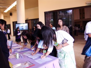 การนำเสนอวิสัยทัศน์ ของผู้สมัครและผู้ได้รับการเสนอชื่อ ให้สมควรดำรงตำแหน่งอธิการบดี ณ หอประชุมมหาวิทยาลัยเทคโนโลยีราชมงคลธัญบุรี ในวันพุธที่ 5 มิถุนายน 2556