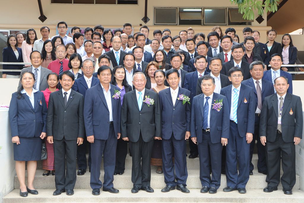 รศ.ดร.ประเสริฐ ปิ่นปฐมรัฐ อธิการบดีมหาวิทยาลัยเทคโนโลยีราชมงคลธัญบุรี นายวีระศักดิ์ วงษ์สมบัติ กรรมการสภามหาวิทยาลัยผู้ทรงคุณวุฒิ พร้อมกับผู้บริหาร ให้การต้อนรับ พลอากาศเอกวาภิรมย์ มนัสรังษี รองสมุหราชองค์รักษ์ ประธานคณะกรรมการดำเนินงานโครงการพระราชทานความช่วยเหลือส่วนพระองค์สมเด็จพระเทพรัตนราชสุดาฯ สยามบรมราชกุมารี และ ฯพณฯ IM KOCH รัฐเลขาธิการ กระทรวงศึกษาธิการ เยาวชนและการกีฬา แห่งราชอาณาจักรกัมพูชา ในโอกาสที่ร่วมกันพัฒนาหลักสูตรครูอาชีวศึกษาให้กับวิทยาลัยกำปงเฌอเตียล และศึกษาดูงานการบริหารการศึกษาและการจัดการศึกษาด้านอาชีวศึกษา ณ มหาวิทยาลัยเทคโนโลยีราชมงคลธัญบุรี