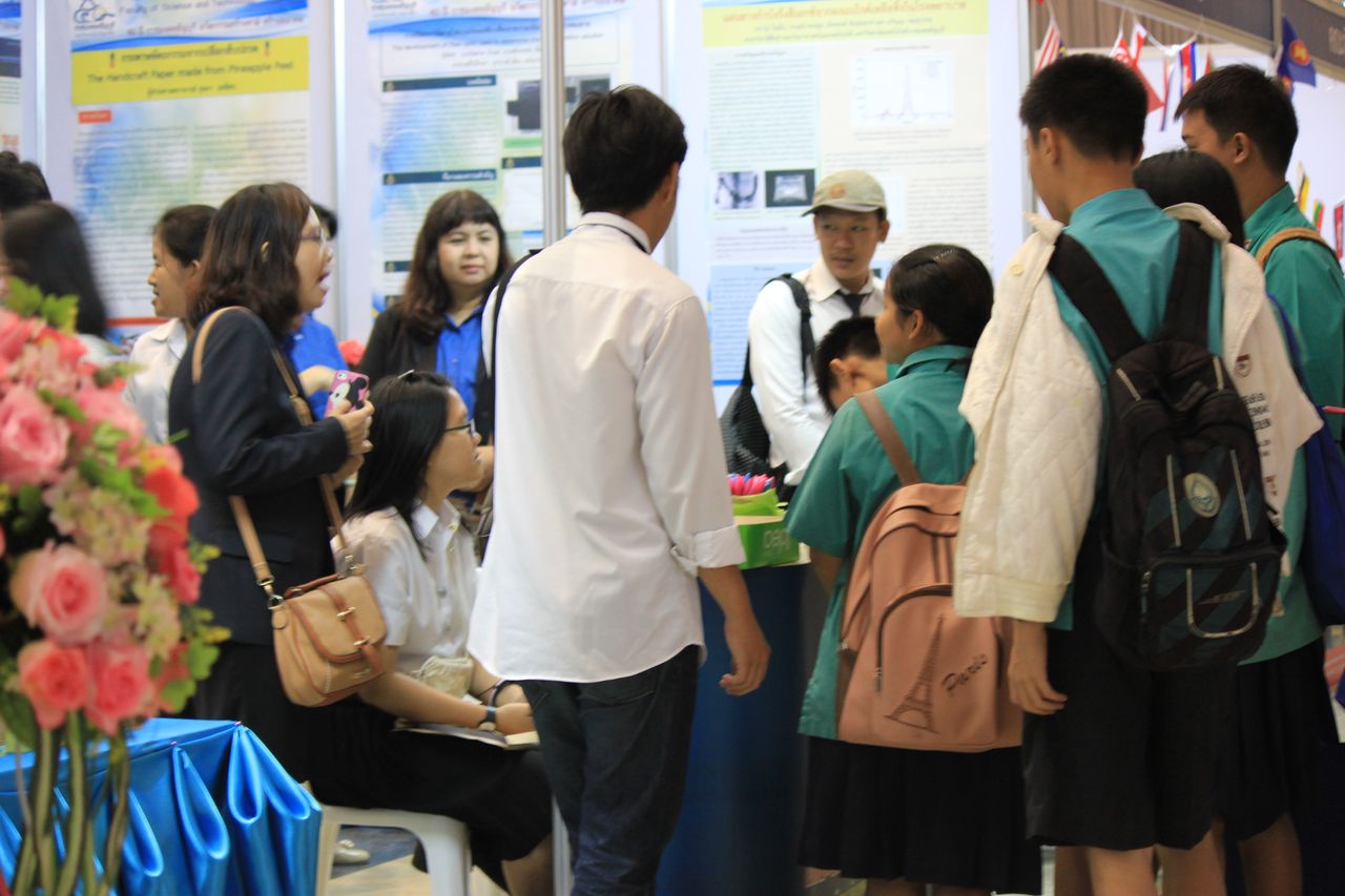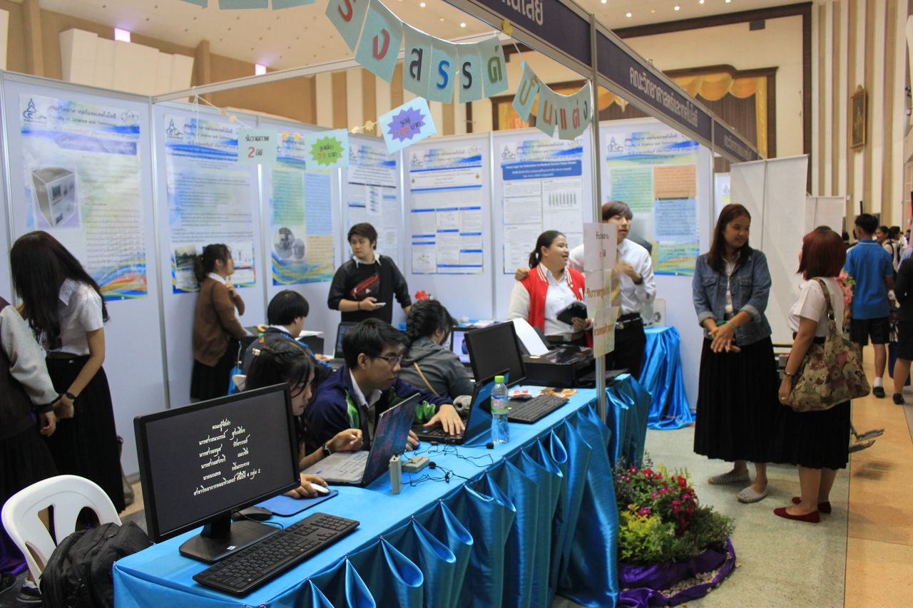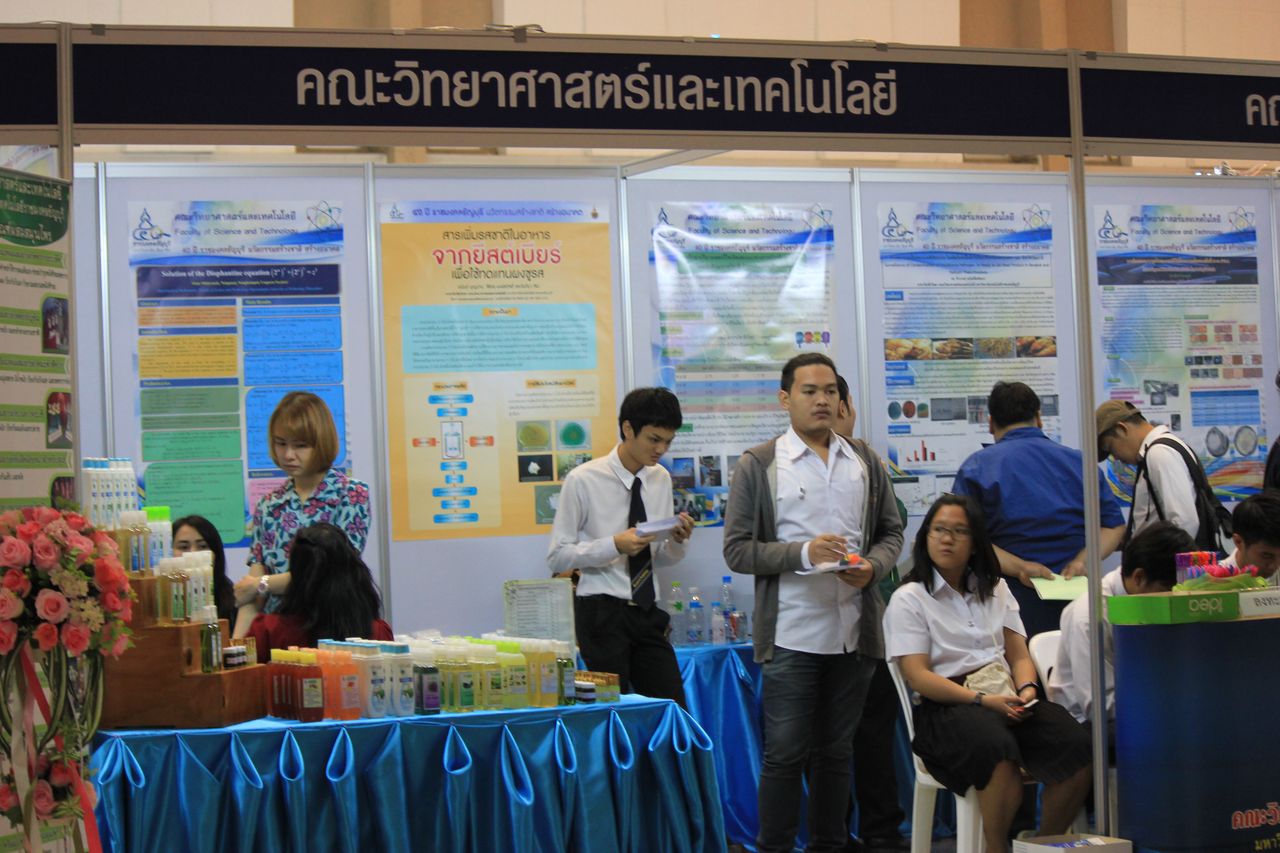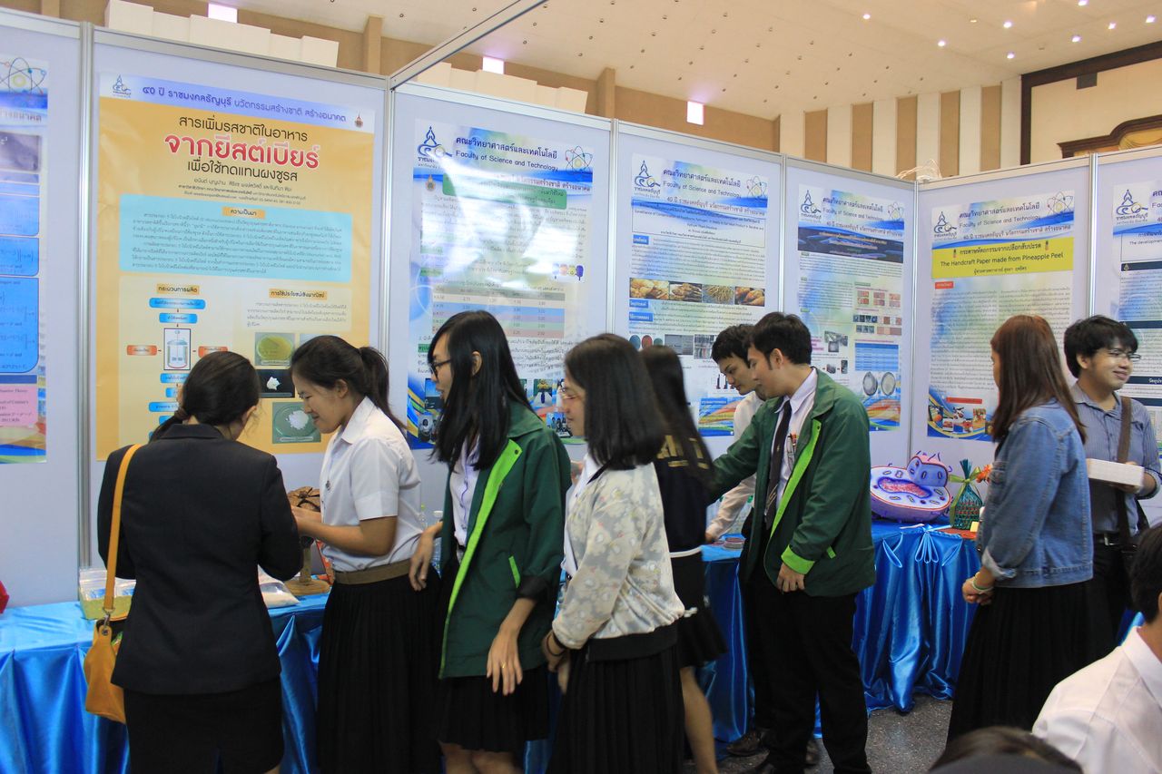 ภาพบรรยากาศนิทรรศการเผยแพร่งานวิจัยและสิ่งประดิษฐ์ บูธของคณะวิทยาศาสตร์และเทคโนโลยี ในงานวันสถาปนามหาวิทยาลัย 40 ปี วันที่ 18 ม.ค.2558 ณ หอประชุม มทร.ธัญบุรี