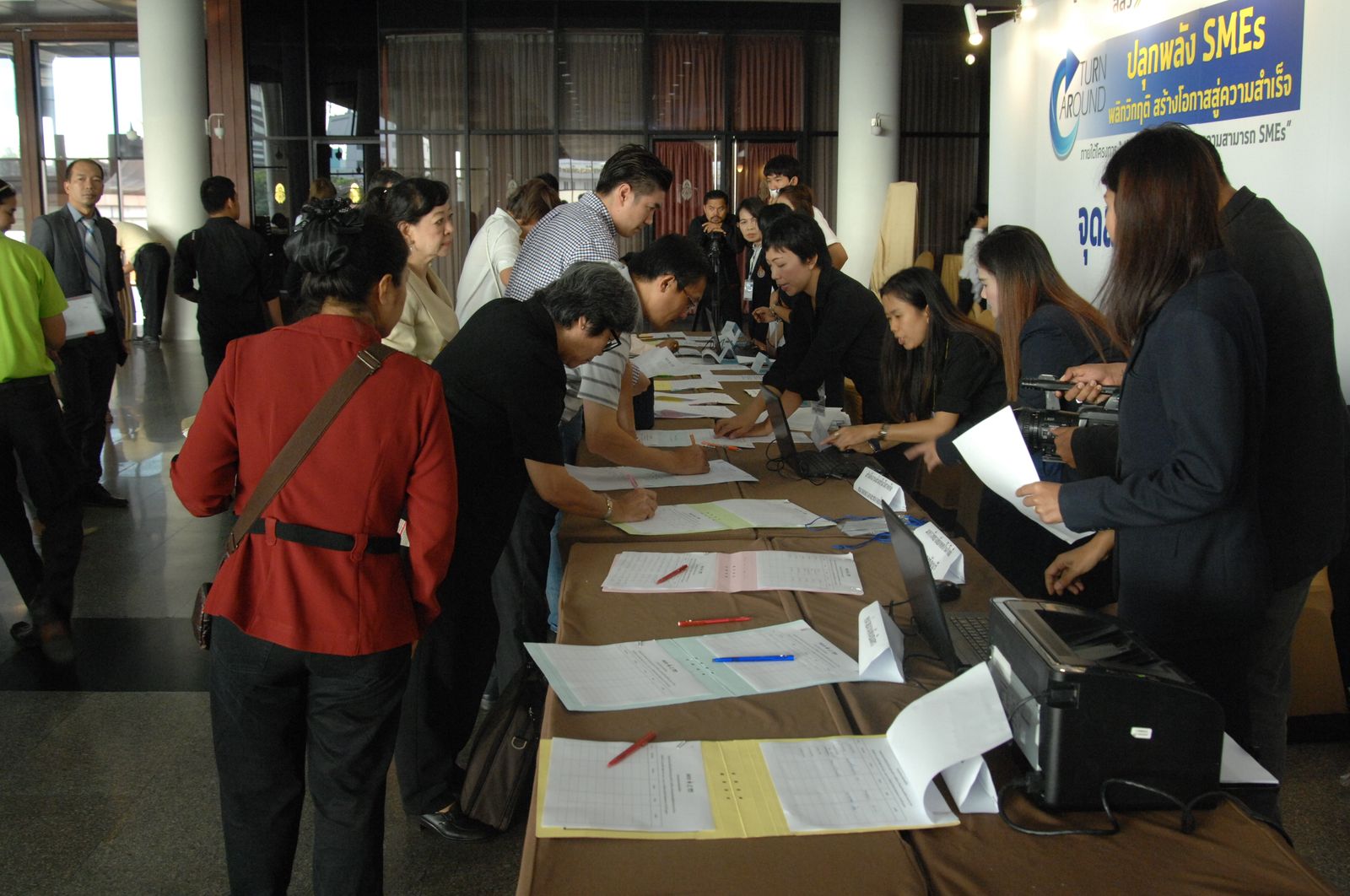 เปิดตัวโครงการปรับแผนธุรกิจและเพิ่มขีดความสามารถ SMEs สสว. ร่วมกับมหาวิทยาลัยเทคโนโลยีราชมงคล (มทร.) ธัญบุรี ธนาคารเอสเอ็มอี และภาคีเอกชน เร่งช่วยเหลือธุรกิจขนาดกลางและขนาดย่อม(SMEs) กลุ่ม Turn Around 10,000 กิจการ ในภาคการค้าและบริการให้สามารถประกอบธุรกิจได้อย่างต่อเนื่องในภาวะเศรษฐกิจชะลอตัว และสามารถกลับมาดำเนินธุรกิจเจริญเติบโตต่อไปได้