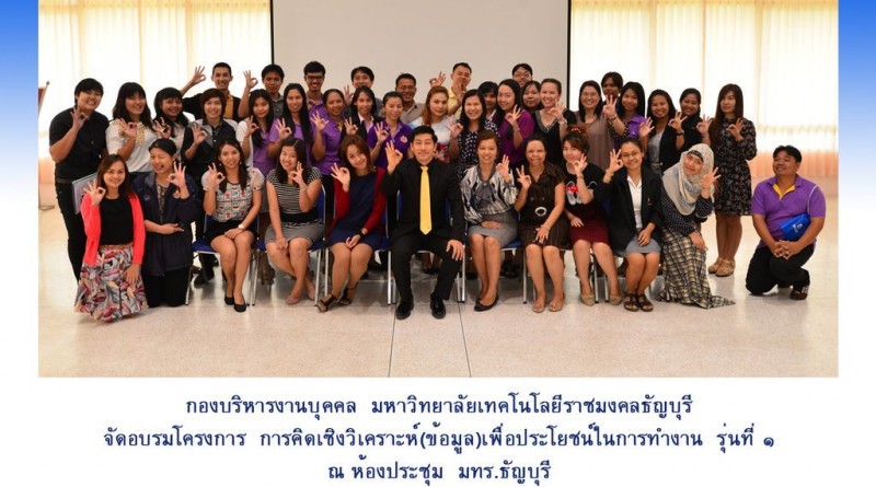 กองบริหารงานบุคคล มหาวิทยาลัยเทคโนโลยีราชมงคล(มทร.)ธัญบุรี จัดอบรมโครงการ การคิดเชิงวิเคราะห์(ข้อมูล)เพื่อประโยชน์ในการทำงาน รุ่นที่ ๑ ณ ห้องประชุม มทร.ธัญบุรี