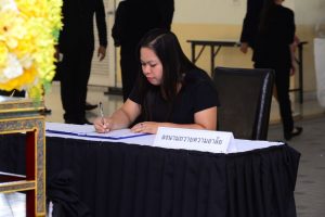 รศ.ดร.ประเสริฐ ปิ่นปฐมรัฐ อธิการบดีมหาวิทยาลัยเทคโนโลยีราชมงคลธัญบุรี ผู้บริหาร และบุคลากร มทร.ธัญบุรี ร่วมลงนามถวายความอาลัยแด่พระบาทสมเด็จพระปรมินทรมหาภูมิพลอดุลเดช ณ สำนักงานอธิการบดี มทร.ธัญบุรี