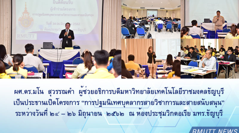 ปฐมนิเทศบุคลากร – ผศ.ดร.มโน สุวรรณคำ ผู้ช่วยอธิการบดีมหาวิทยาลัยเทคโนโลยีราชมงคลธัญบุรี เป็นประธานเปิดโครงการ “การปฐมนิเทศบุคลากรสายวิชาการและสายสนับสนุน” ระหว่างวันที่ ๒๔ – ๒๖ มิถุนายน ๒๕๖๒ ณ ห้องประชุมวิกตอเรีย มทร.ธัญบุรี