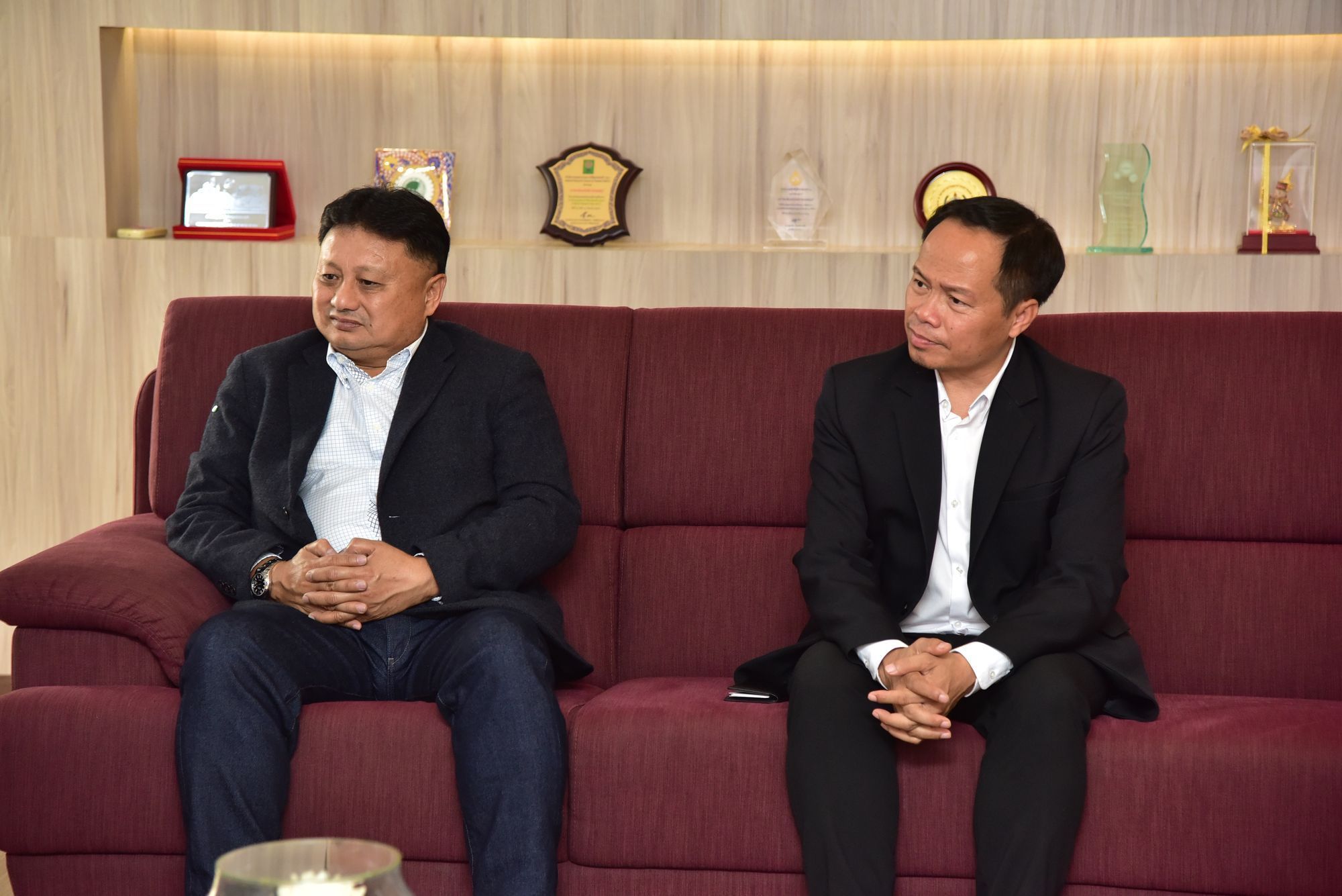ผศ.ดร.สมหมาย ผิวสอาด อธิการบดีมหาวิทยาลัยเทคโนโลยีราชมงคลธัญบุรี ให้การต้อนรับ คุณสยาม โชคสว่างวงศ์ รองอธิการบดีฝ่ายบริหาร สถาบันการจัดการปัญญาภิวัฒน์และคณะ ในการเข้าประชุมหารือแนวทางการทำความร่วมมือร่วมกัน ณ ห้องประชุมธัญกาฬ มทร.ธัญบุรี
