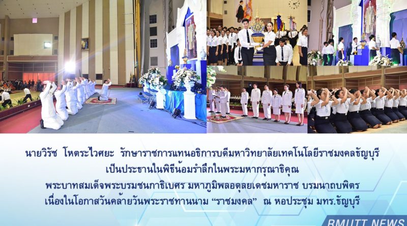 นายวิรัช โหตระไวศยะ รักษาราชการแทนอธิการบดีมหาวิทยาลัยเทคโนโลยีราชมงคลธัญบุรี เป็นประธานในพิธีน้อมรำลึกในพระมหากรุณาธิคุณ พระบาทสมเด็จพระบรมชนกาธิเบศร มหาภูมิพลอดุลยเดชมหาราช บรมนาถบพิตร เนื่องในโอกาสวันคล้ายวันพระราชทานนาม “ราชมงคล” ณ หอประชุม มทร.ธัญบุรี