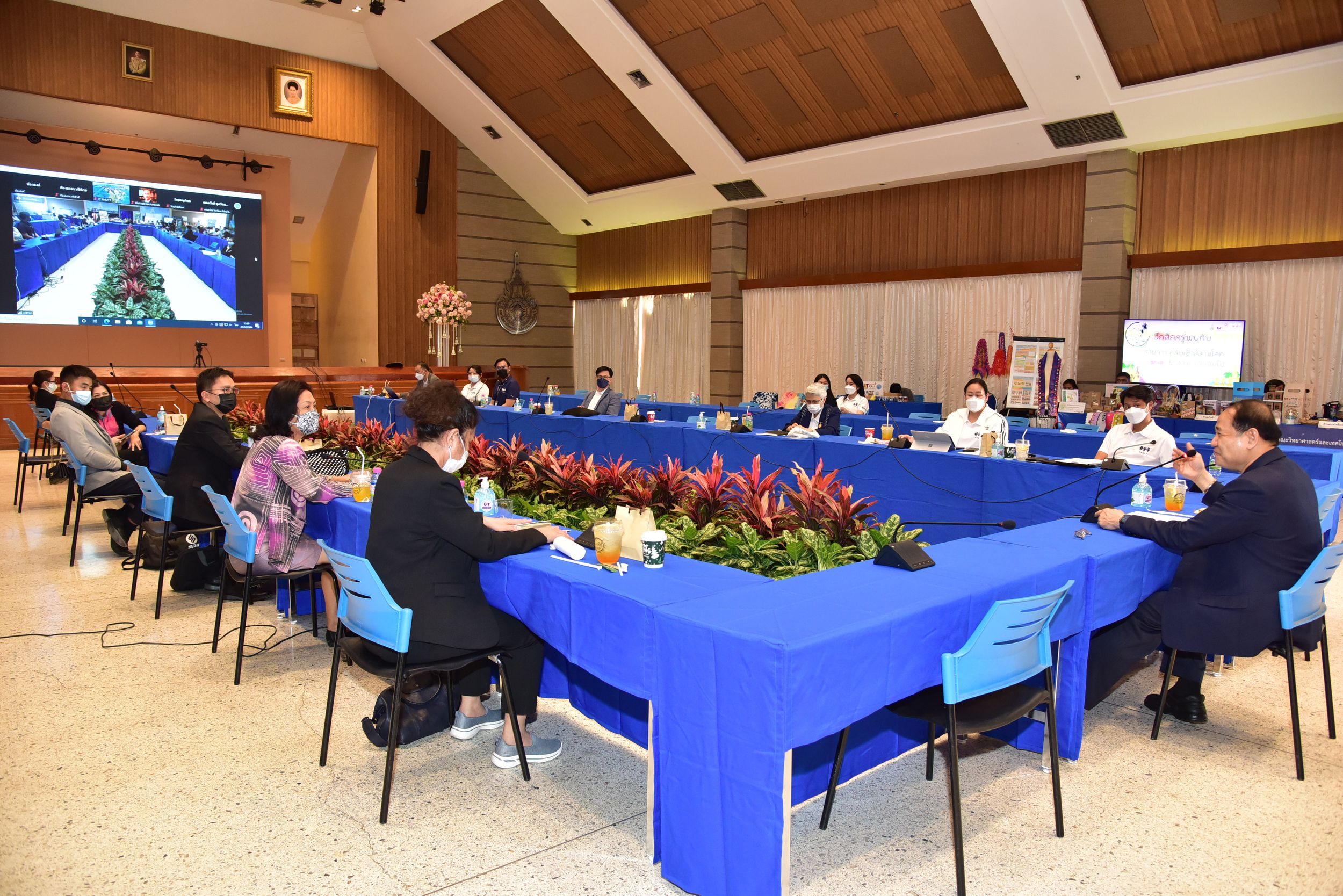 รศ.ดร.สมหมาย ผิวสอาด อธิการบดีมหาวิทยาลัยเทคโนโลยีราชมงคลธัญบุรี พร้อมคณะผู้บริหาร และคณาจารย์ ให้การต้อนรับคณะกรรมการกำกับ ติดตาม ประเมินโครงการ 1 ตำบล 1 มหาวิทยาลัย ของเครือข่ายเพื่อการพัฒนาอุดมศึกษา ภาคกลางตอนบน จุฬาลงกรณ์มหาวิทยาลัย ในการเข้าศึกษาดูงานการดำเนินโครงการ ฯ และร่วมแลกเปลี่ยนเรียนรู้ ถอดบทเรียนการทำงาน พร้อมเสนอข้อคิดเห็น ปัญหา อุปสรรค เพื่อหาแนวทางในการปรับปรุงแก้ไขร่วมกัน ณ ห้องประชุมสงค์ธนาพิทักษ์ มทร.ธัญบุรี 21 ธันวาคม 2564