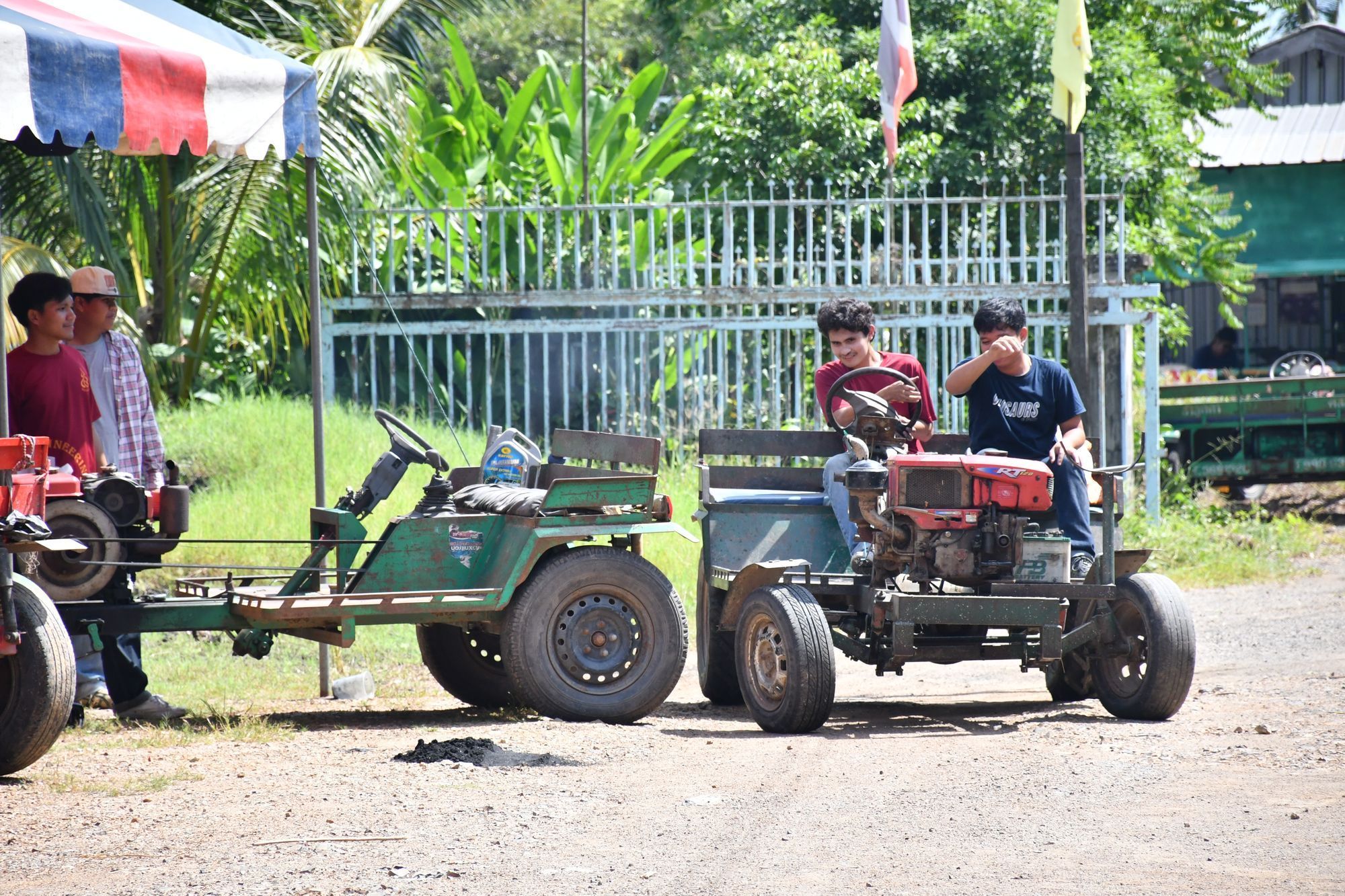 อาจารย์และนักศึกษา ภาควิชาวิศวกรรมเกษตร ลงพื้นที่บริการเปลี่ยนถ่ายน้ำมันเครื่องยนต์ทางการเกษตรฟรี และบริการวิชาการสาธิตเครื่องฉีดพ่นยากำจัดโรคบนยอดมะพร้าว