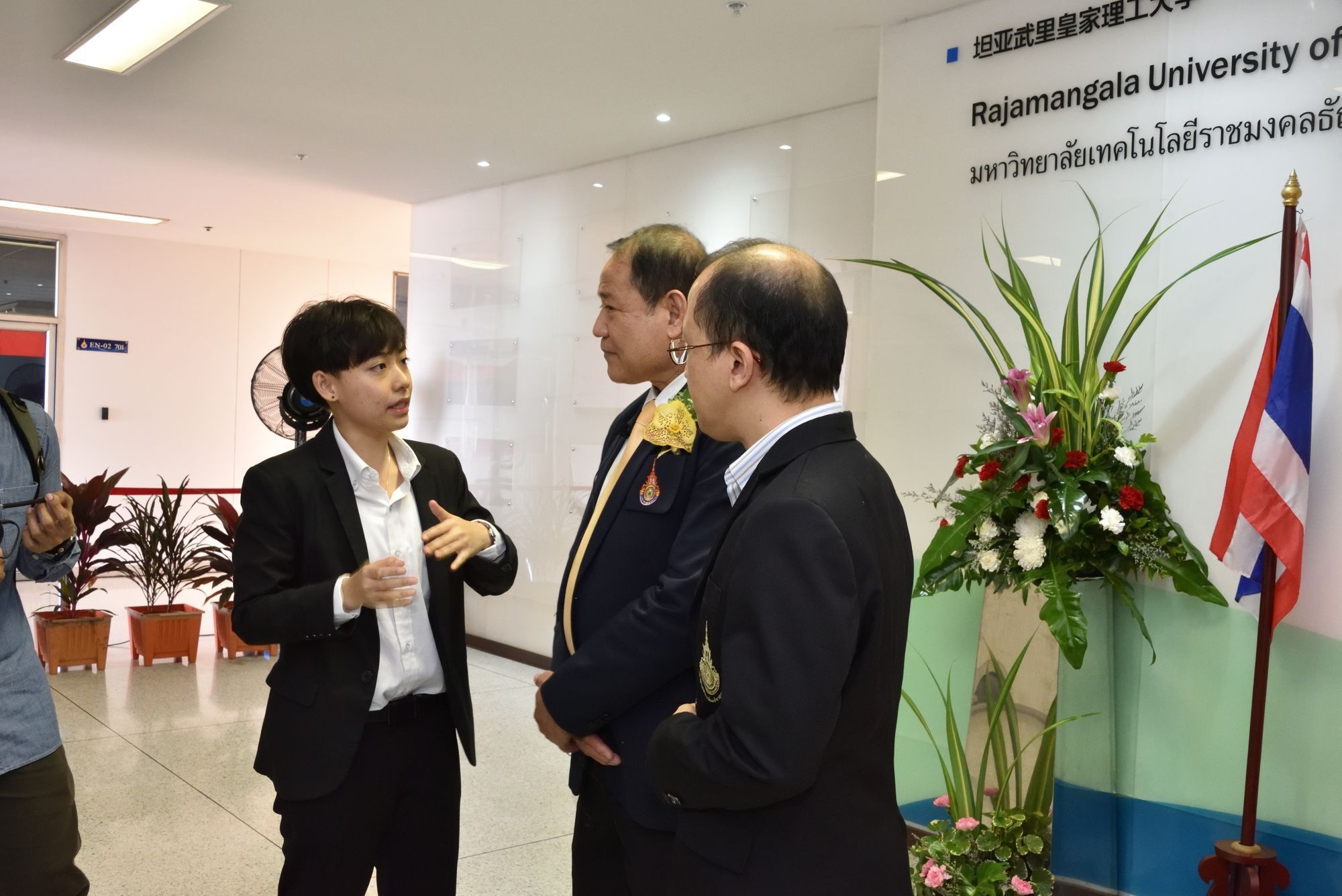 พิธีเปิดสถาบันความร่วมมือไทยจีน โดยมี ดร.วีระศักดิ์ วงษ์สมบัติ นายกสภามหาวิทยาลัยเทคโนโลยีราชมงคล (มทร.) ธัญบุรี พร้อมด้วย นายวิรัช โหตระไวศยะ รักษาการแทนอธิการบดี มทร.ธัญบุรี ให้การต้อนรับ