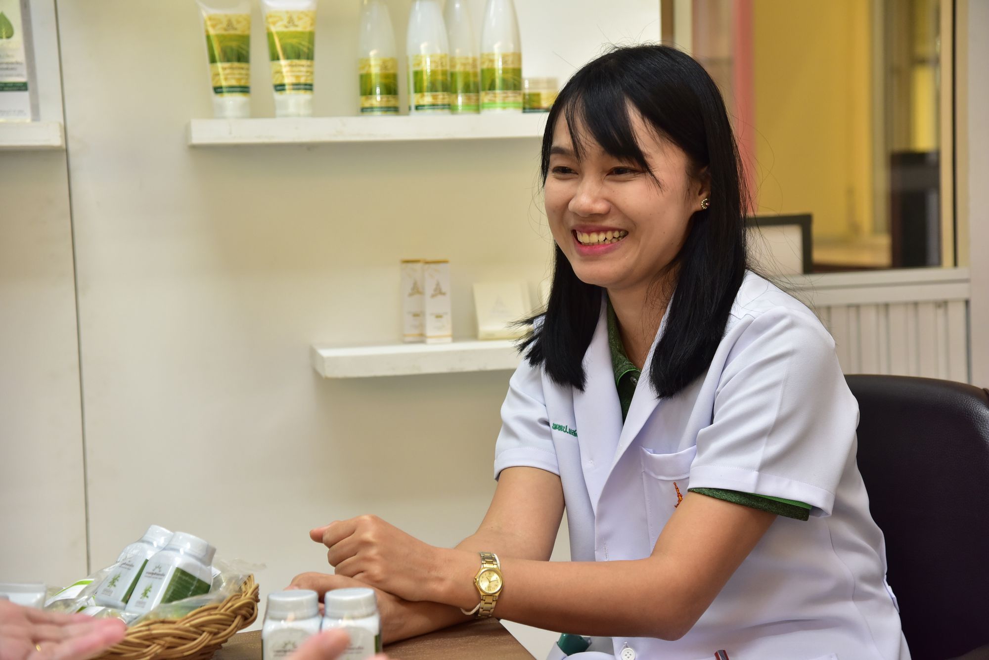 ประธานหลักสูตรการแพทย์แผนไทยประยุกต์ และเภสัชกรหญิง ดร.บุณณดา ภมรปฐมกุล หัวหน้างานวิจัยและพัฒนายาและสมุนไพรร่วมกันให้ความรู้และเรื่องราวน่ารู้ของพืชสมุนไพรที่ชื่อ “ฟ้าทะลายโจร”