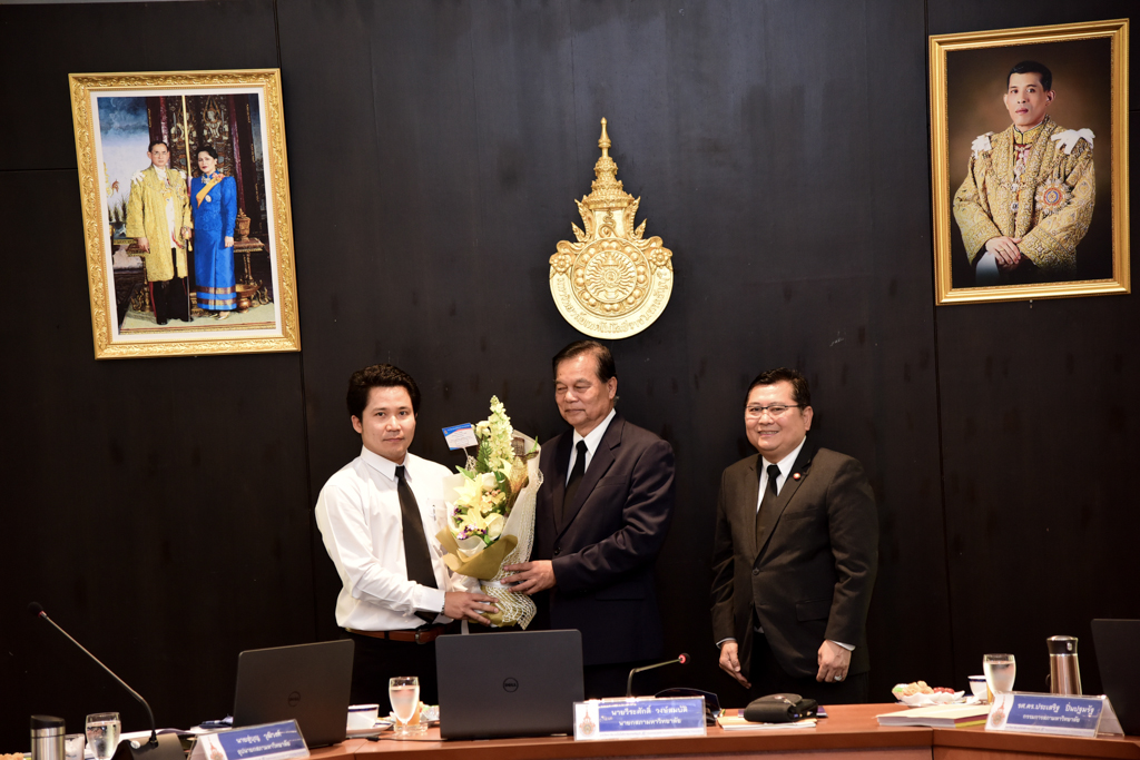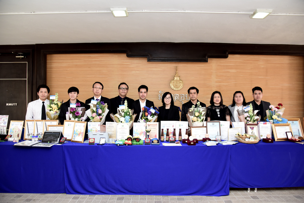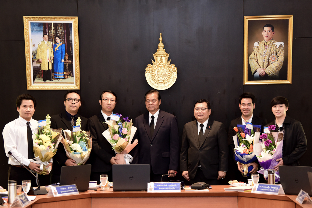 นายวีระศักดิ์ วงษ์สมบัติ นายกสภามหาวิทยาลัยเทคโนโลยีราชมงคลธัญบุรี มอบช่อดอกไม้แสดงความยินดีกับนักวิจัยที่ได้รับรางวัล INST 2017 จากกรุงไทเป ประเทศไต้หวัน และรางวัล IWIS 2017 จากกรุงวอร์ซอ สาธารณรัฐโปแลนด์ ภายในการประชุมสภามหาวิทยาลัย ครั้งที่ ๑๐/๒๕๖๐ ณ ห้องประชุมมังคลอุบล มทร.ธัญบุรี