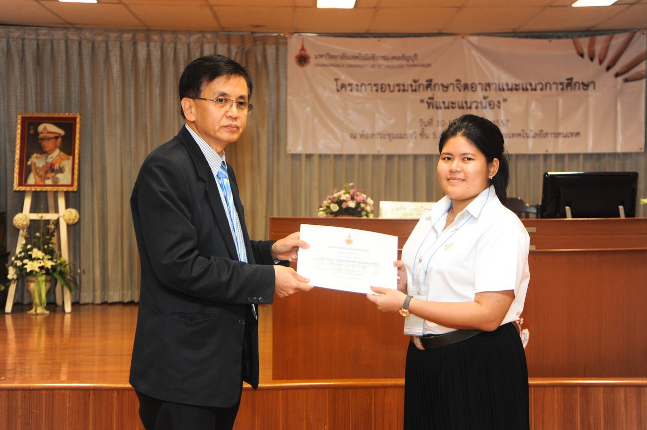 มอบประกาศนียบัตร, อบรมนักศึกษา, จิตอาสา, แนะแนวการศึกษา, พี่แนะแนวน้อง, RMUTT, มทร.ธัญบุรี, ราชมงคลธัญบุรี