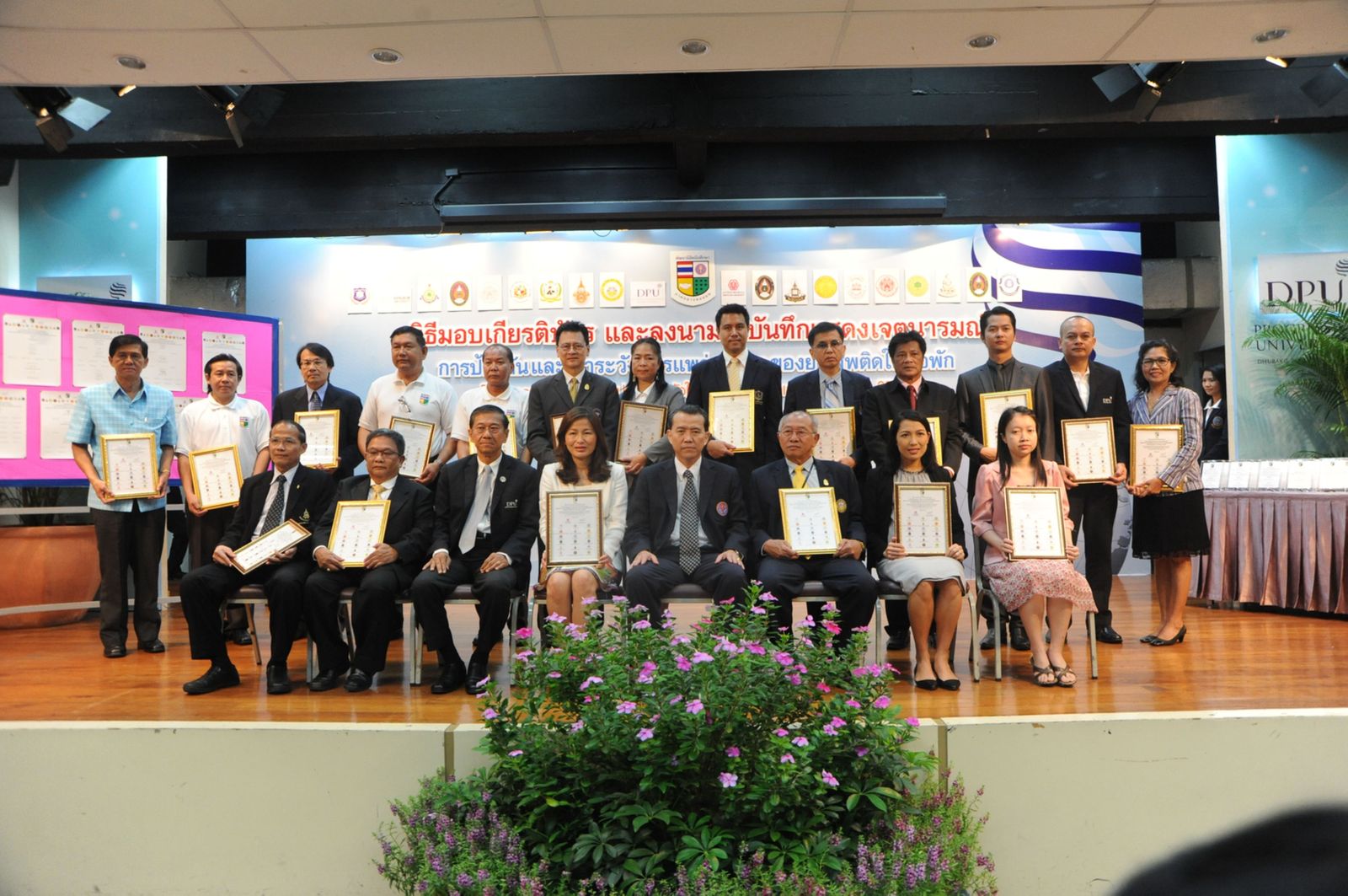 พิธีมอบเกียรติบัตร และรวมลงนามในบันทึกแสดงเจตนารมณ์ การป้องกันและเฝ้าระวังการแพร่ระบาดของยาเสพติดในหอพัก