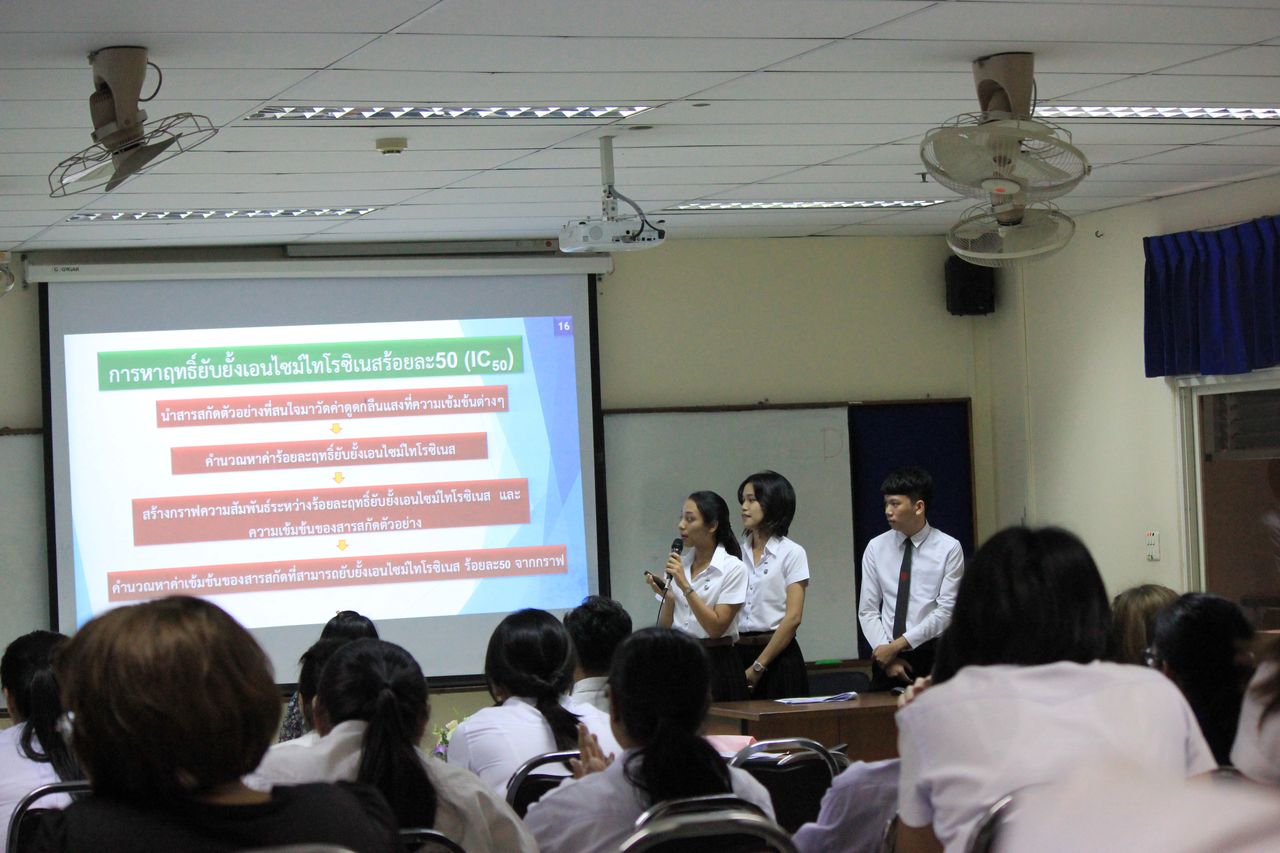 บรรยากาศการนำเสนอโครงงานวิจัยระดับอุดมศึกษา คณะวิทยาศาสตร์และเทคโนโลยี