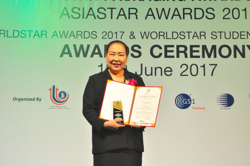 ขอแสดงความยินดีกับนักศึกษาที่ได้รับรางวัล ต้นแบบบรรจุภัณฑ์เพื่อการจัดจำหน่ายสำหรับสินค้าทั่วไป AsiaStar Awards 2016 และ ThaiStarPackaging Awards 2017 เมื่อวันที่ 14 มิถุนายน 2560