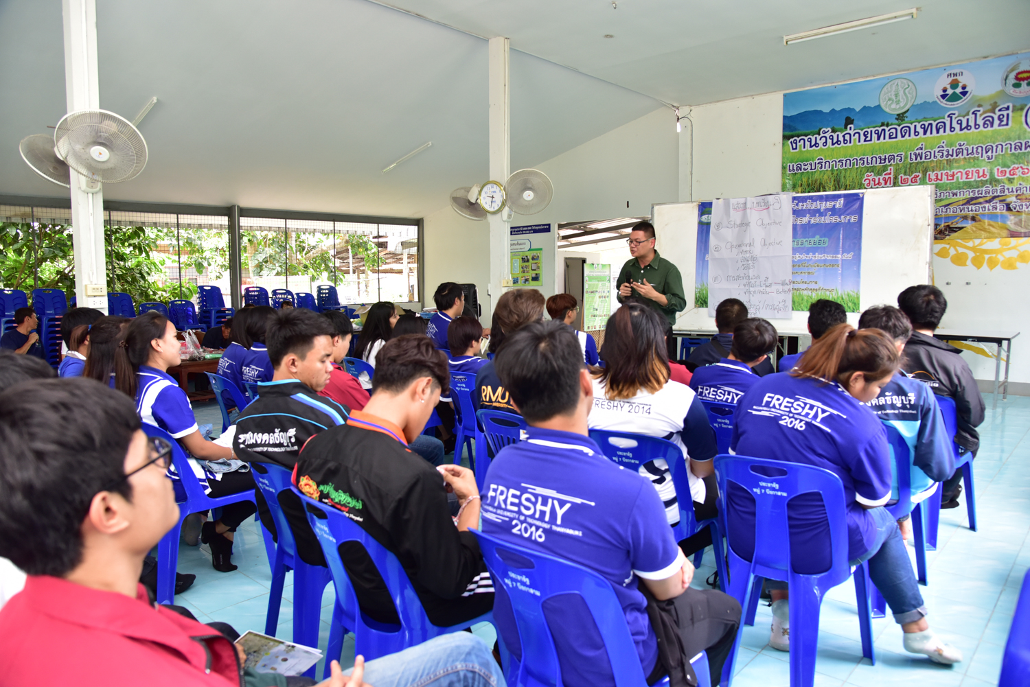 นายวิรัช โหตระไวศยะ รองอธิการบดีมทร.ธัญบุรี เป็นประธานเปิดโครงการขับเคลื่อนปรัชญาของเศรษฐกิจพอเพียงด้วยพลังนิสิตนักศึกษา เมื่อวันที่ 24 พ.ค. 61