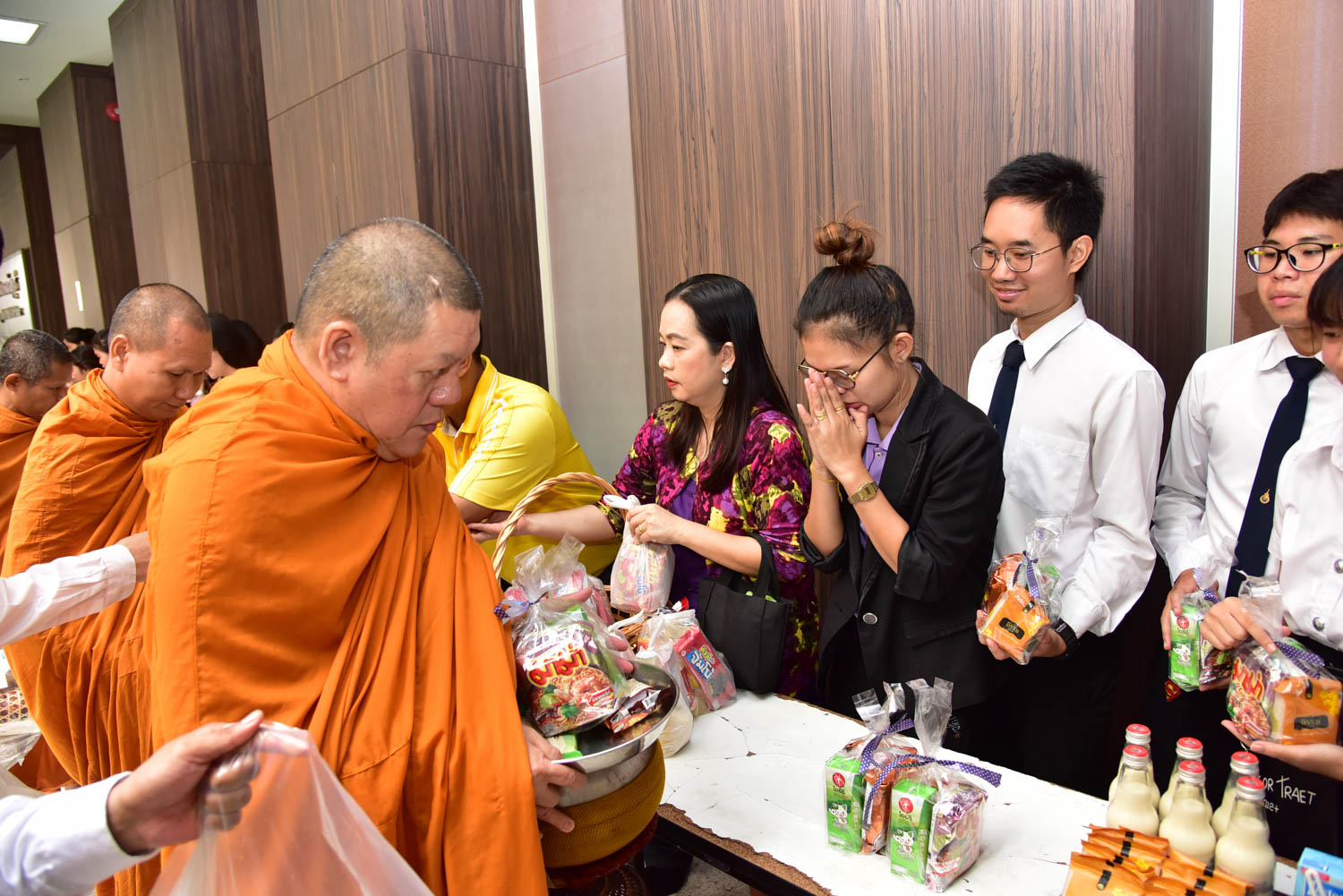 นายวิรัช โหตระไวศยะ รักษาราชการแทนอธิการบดี มทร.ธัญบุรี ทำบุญตักบาตรและถวายพระพรชัยมงคล ในโอกาสวันเฉลิมพระชนมพรรษา สมเด็จพระนางเจ้าสุทิดา พัชรสุธาพิมลลักษณ พระบรมราชินี ๓ มิถุนายน ๒๕๖๒