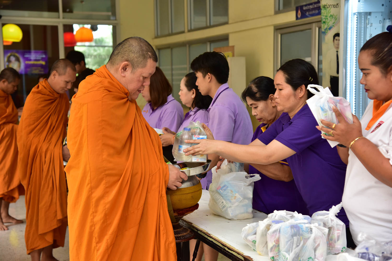 นายวิรัช โหตระไวศยะ รักษาราชการแทนอธิการบดี มทร.ธัญบุรี ทำบุญตักบาตรและถวายพระพรชัยมงคล ในโอกาสวันเฉลิมพระชนมพรรษา สมเด็จพระนางเจ้าสุทิดา พัชรสุธาพิมลลักษณ พระบรมราชินี ๓ มิถุนายน ๒๕๖๒