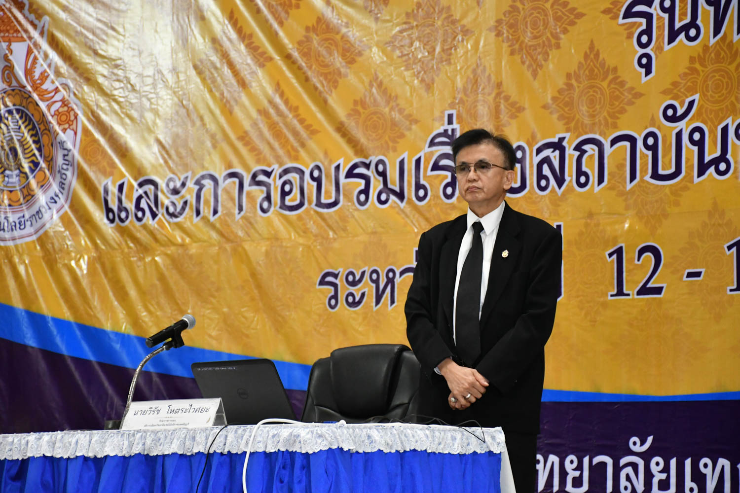 นายวิรัช โหตระไวศยะ รักษาราชการแทนอธิการบดี มทร.ธัญบุรี ต้อนรับนักศึกษาใหม่ เปิดศูนย์ Hotline เฝ้าระวังการจัดกิจกรรมรับน้องและประชุมเชียร์ รุ่นที่ ๑