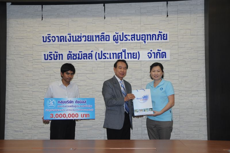 26 ธ.ค. 54 บริษัท ดัชมิลล์ (ประเทศไทย) จำกัด บริจาคเงินช่วยเหลือผู้ประสบอุทกภัย